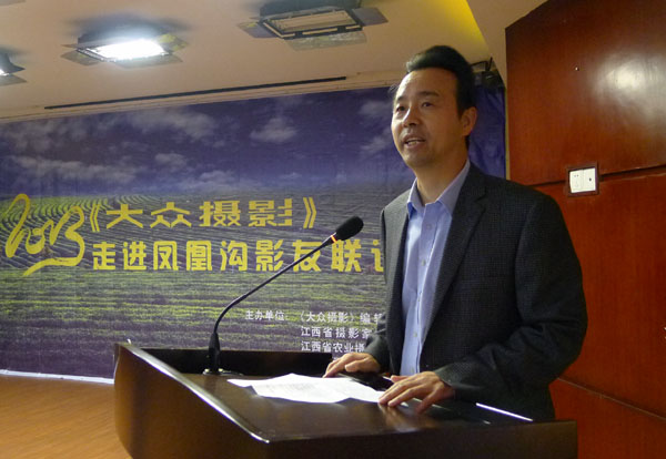九江摄影网讯木力)4月13日,由江西省摄影家协会、江西农业摄协共同举办的《大众摄影》走进凤凰沟联谊会在位于南昌县的江西省凤凰沟风景区举行,来自全省11个市的120名摄影家参加了这一活动。江西省政府党组成员、顾问熊盛文,《大众摄影》主编徐艳娟,编辑郭轶、姜璐娜,江西省摄影家协会主席徐渊明、副主席汪小毅等领导出席。著名自然地理摄影师、《中国国家地理》杂志原首席摄影师、中国摄影最高奖金像奖获得者姜平,国家一级摄影师、连续三届金像奖获得者、第24届全国摄影艺术展评委、福建省摄影家协会副主席石广智作了精彩讲课。应主办方邀请,九江市摄影家协会主席宋小勇、副主席兼秘书长陈杰、副秘书长蔡少敏、庐山区摄协主席桂剡高参加了活动。